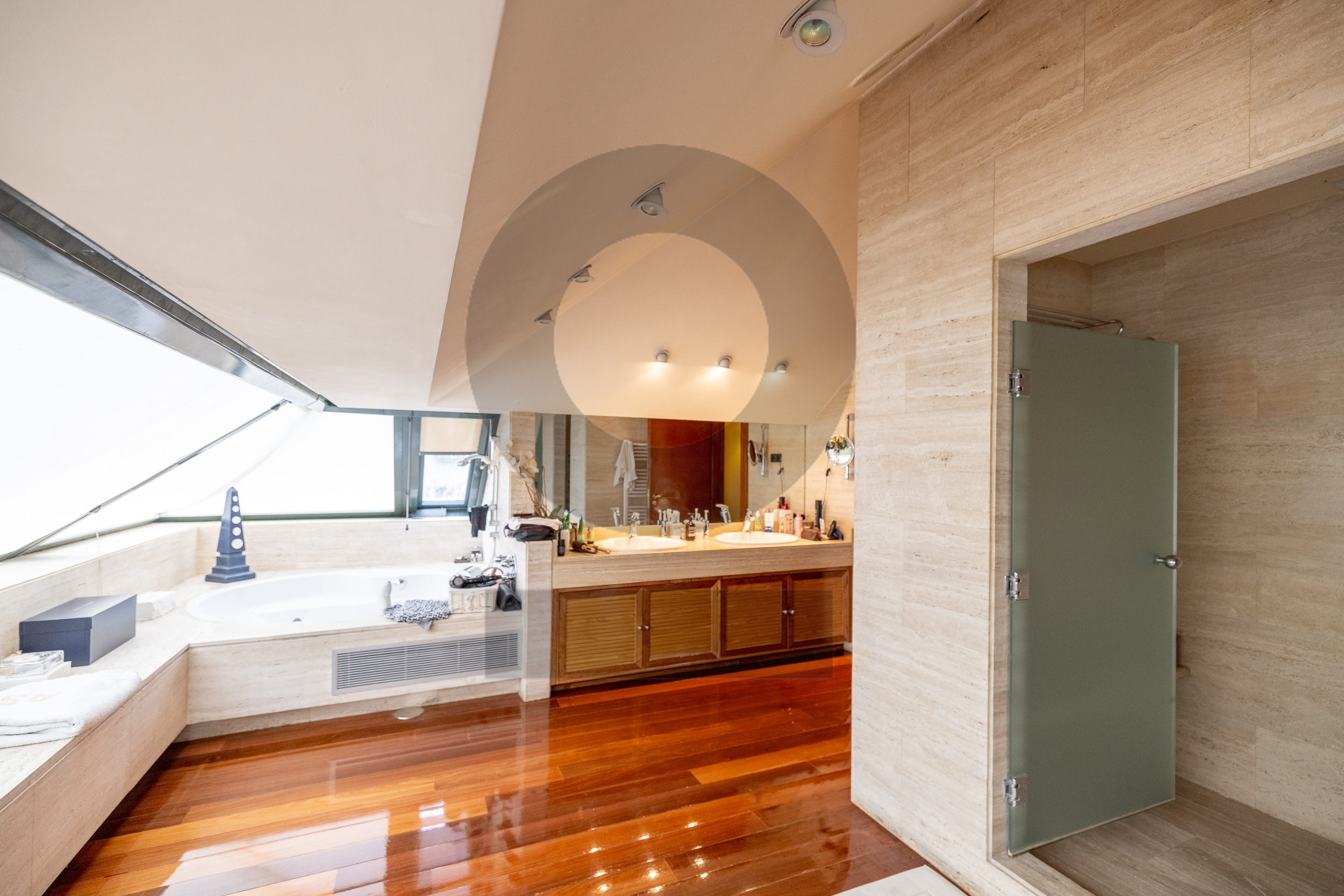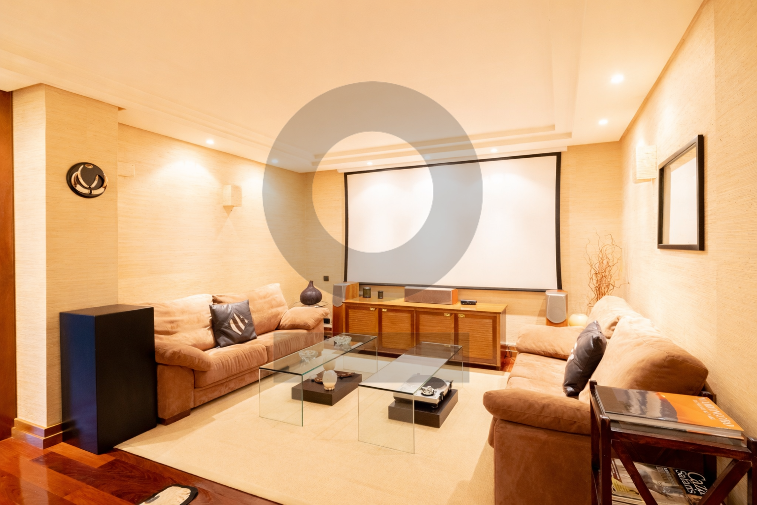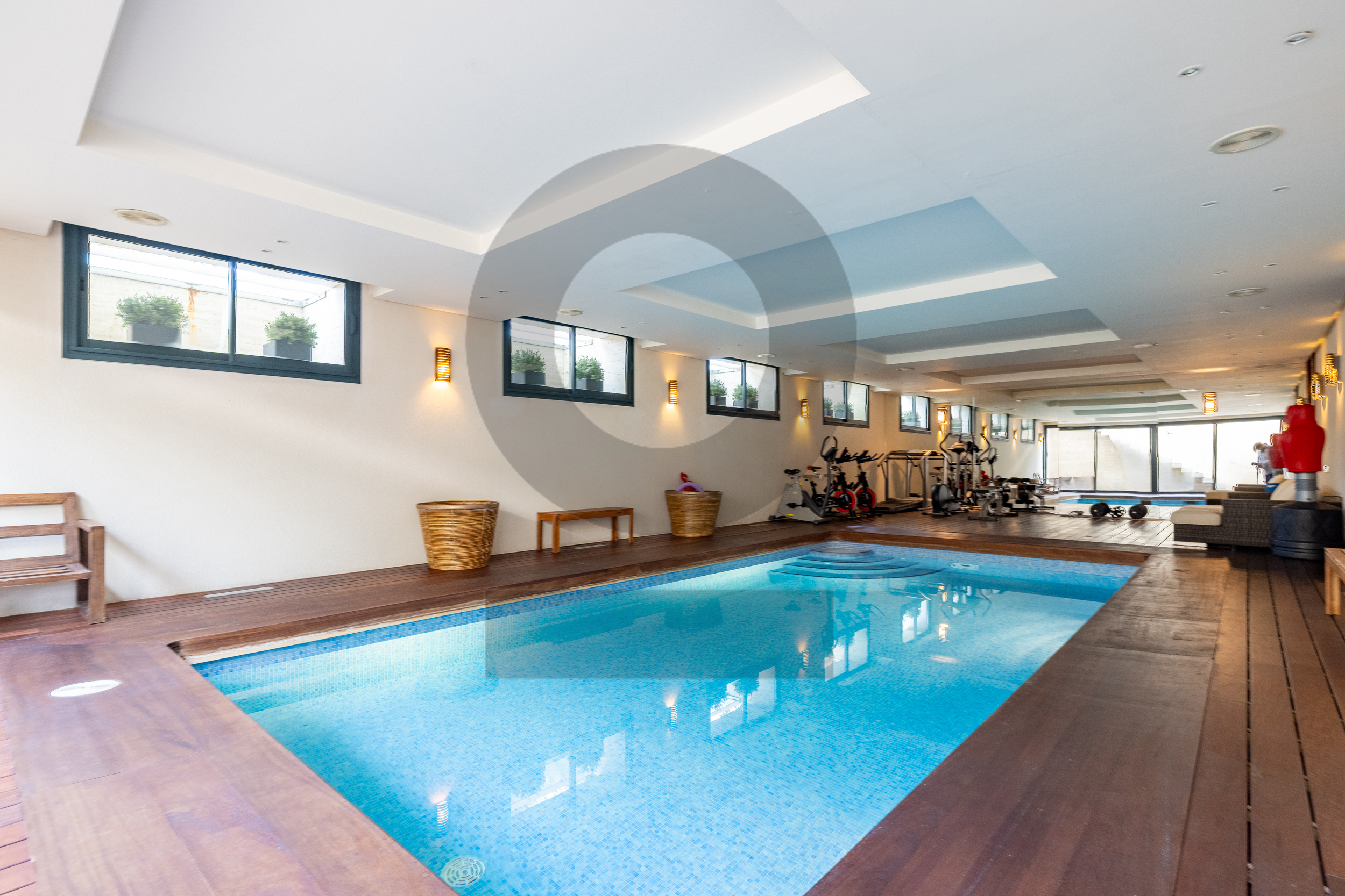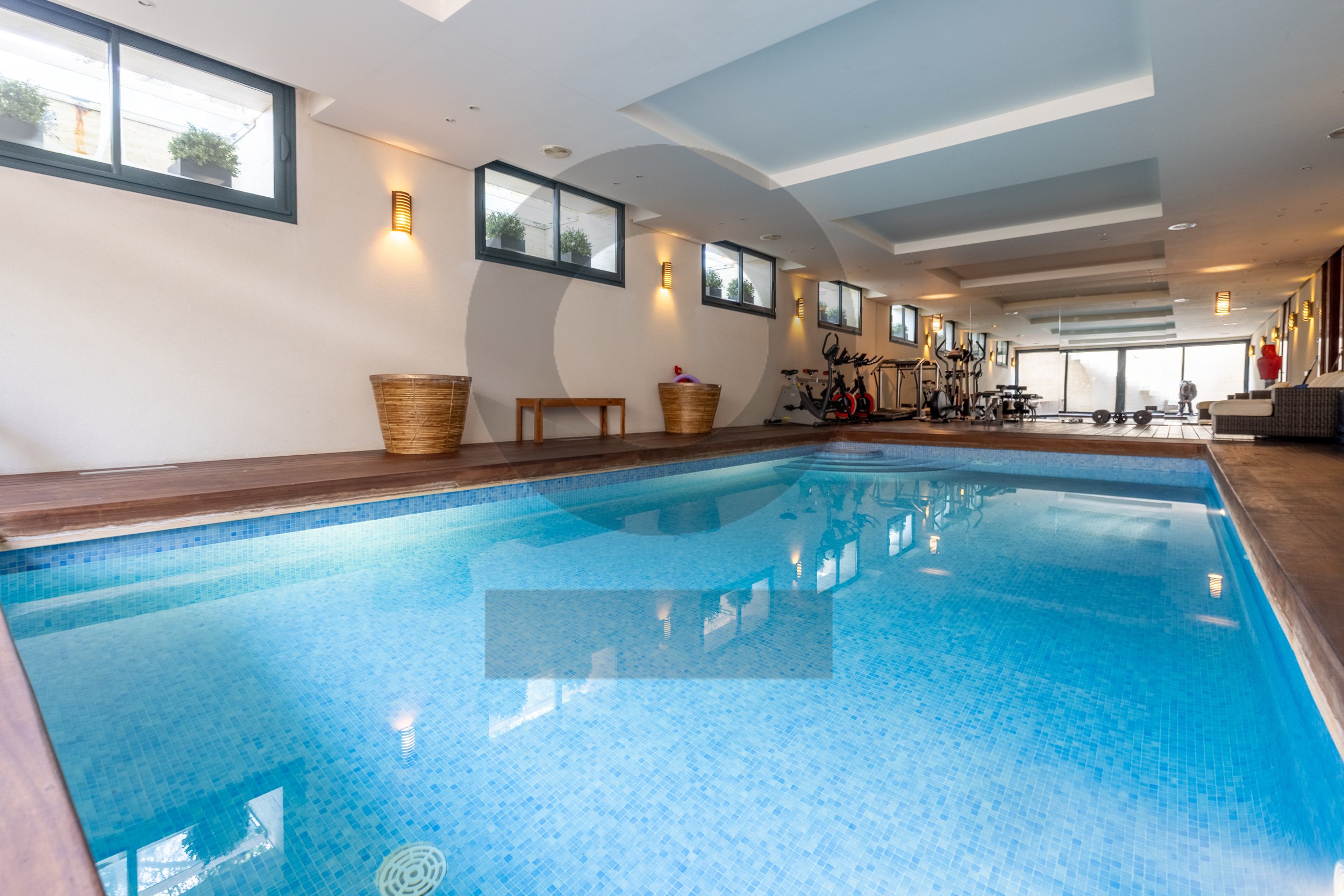 El sótano es uno de los grandes atractivos del chalet. Incluye una sala de cine, una espectacular zona de piscina cubierta con gimnasio, espacios de servicio con baño, garaje con capacidad para varios vehículos y amplias zonas de almacenaje y ascensor
