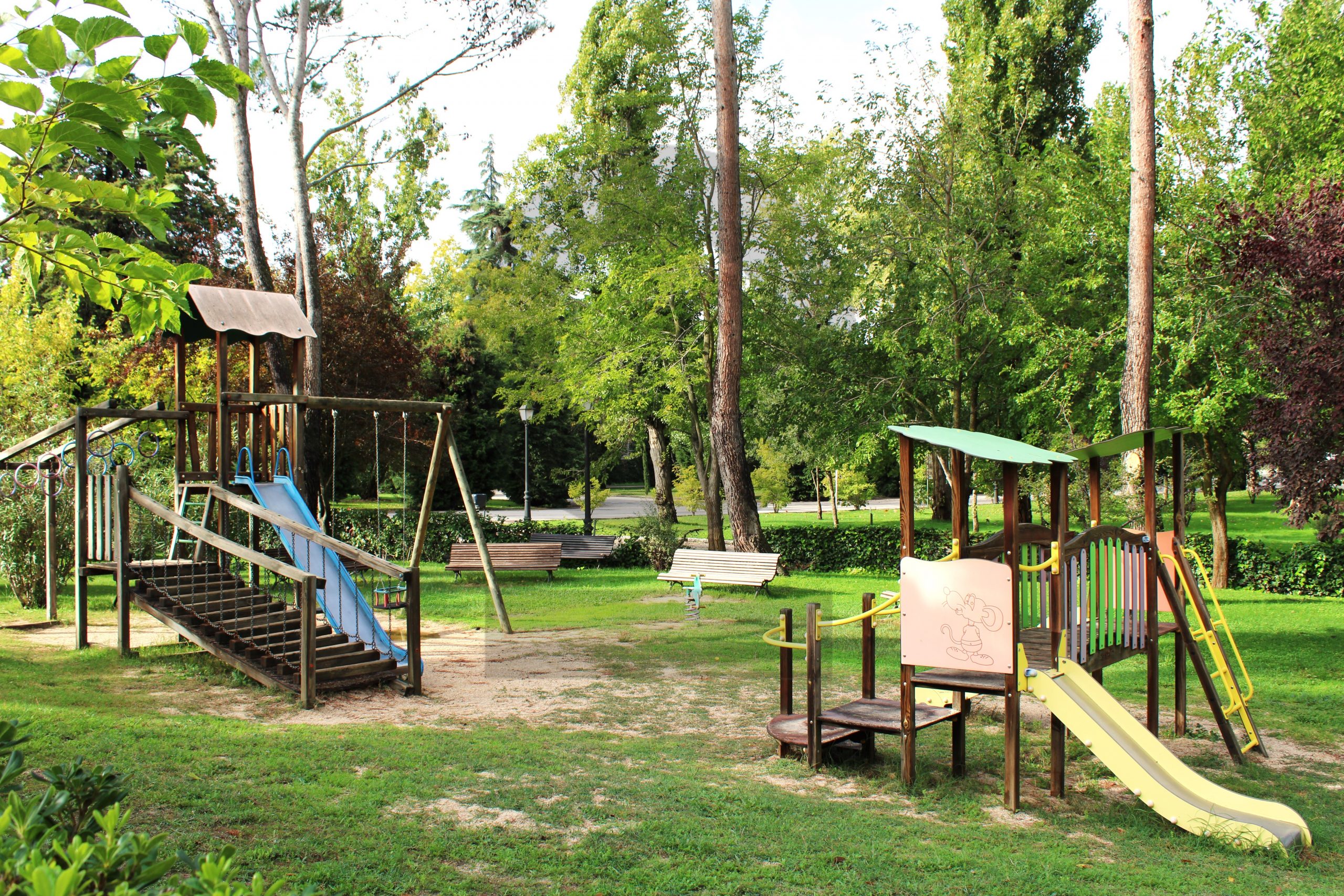La parcela ajardinada ofrece zonas verdes cuidadas, riego automático y espacios pensados para el disfrute al aire libre. El jardín rodea la vivienda proporcionando privacidad y una agradable sensación de amplitud.