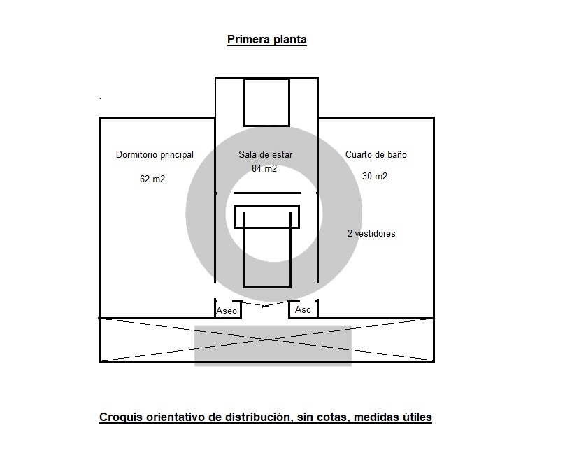 La planta primera alberga el dormitorio principal, que cuenta con una amplia zona de baño y vestidores, además de un salón adicional y distribuidor. Este espacio está pensado como una zona privada, ofreciendo intimidad y confort. Aseo y ascensor
